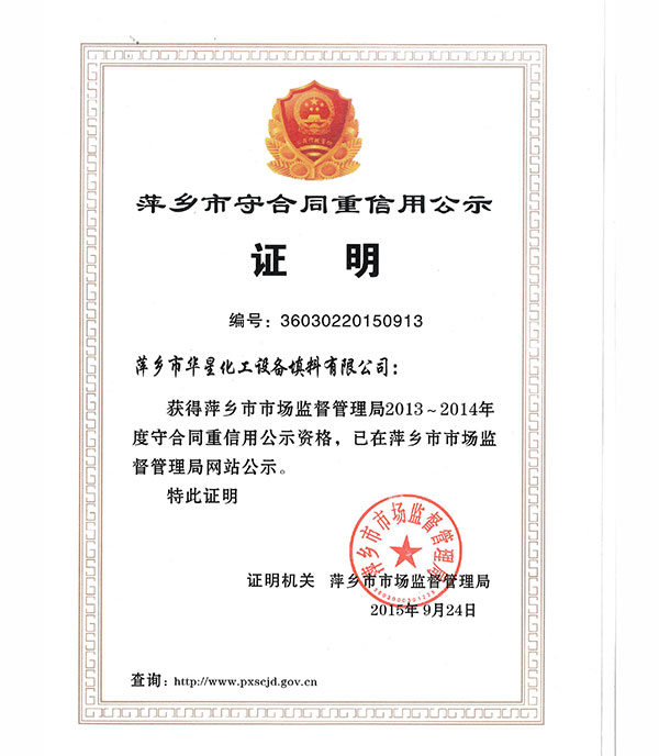 - 萍鄉(xiāng)市守合同重信用公示證書