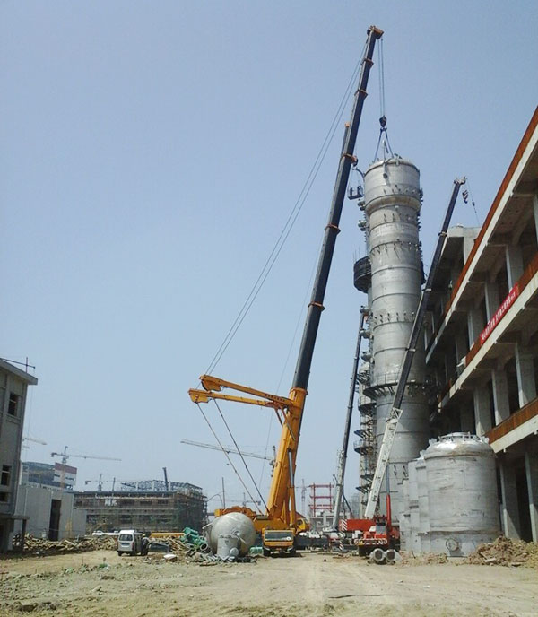 陽煤集團太原化工新材料有限公司化工設(shè)備總包清徐項目現(xiàn)場吊裝圖